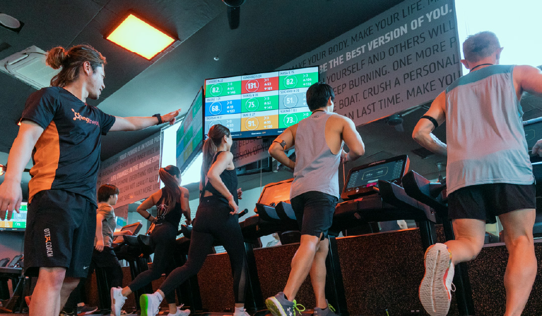 オレンジセオリーのクラスは、有酸素運動と筋力トレーニングを組み合わせて、全身をくまなく鍛える60分のインターバルトレーニングです。認定コーチが正しい運動をガイドし、心拍数をコントロールしながら運動することで、翌日以降も脂肪燃焼が継続します。